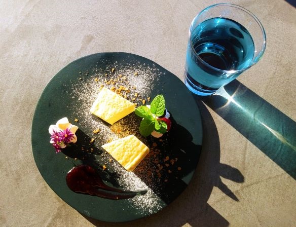 そして…、水!水色!!思わず店員さんに「これはなんですか!?」って聞いてしまいましたが、バタフライビーで色を出して少しレモンを絞ったお水ということでした。