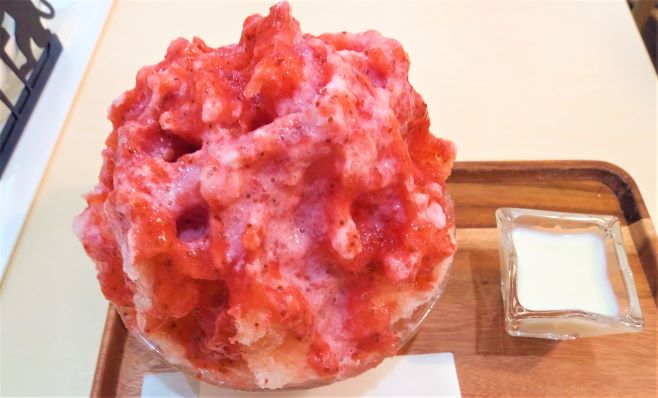 私は富士山の天然氷を使った、イチゴミルクを頼んだのですが、味がすごく濃い。