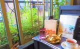 テーブル席にも、木と白い砂利(?)まさにカフェと和の融合といった雰囲気です。