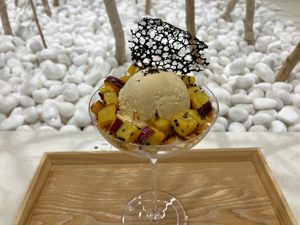 私が注文したのはこちら「和紅茶とおいものパフェ」。