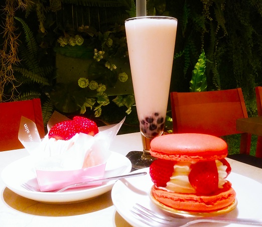 私が頼んだメニューは、苺のモンブラン350円、苺のマカロン350円。2つで通常のケーキ1個分のお値段くらい安い!!