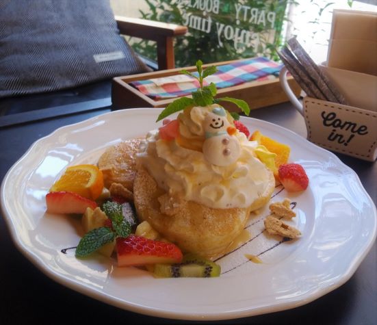 フルーツもたくさんあって、パンケーキもふわっふわ。