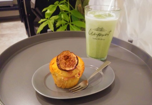 私が注文したのはアイス煎茶ラテ と いちじくのマフィン。
